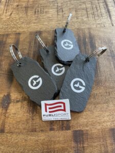 Personnalisation de 200 porte-clés en ardoise des Pans de Travassac, un matériau emblématique de notre belle région.